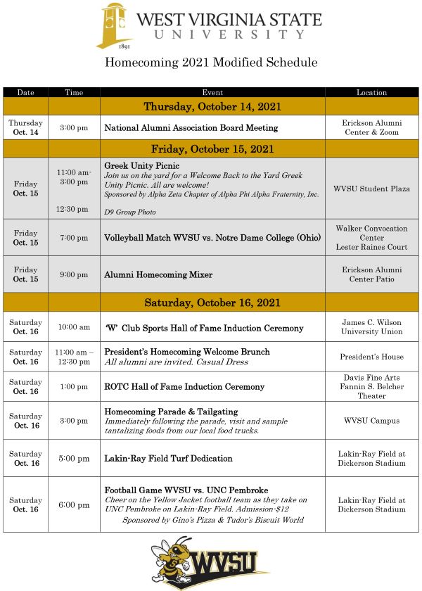 WVSU Homecoming 2021 has been modified. Please click here to view the updated schedule of events.
